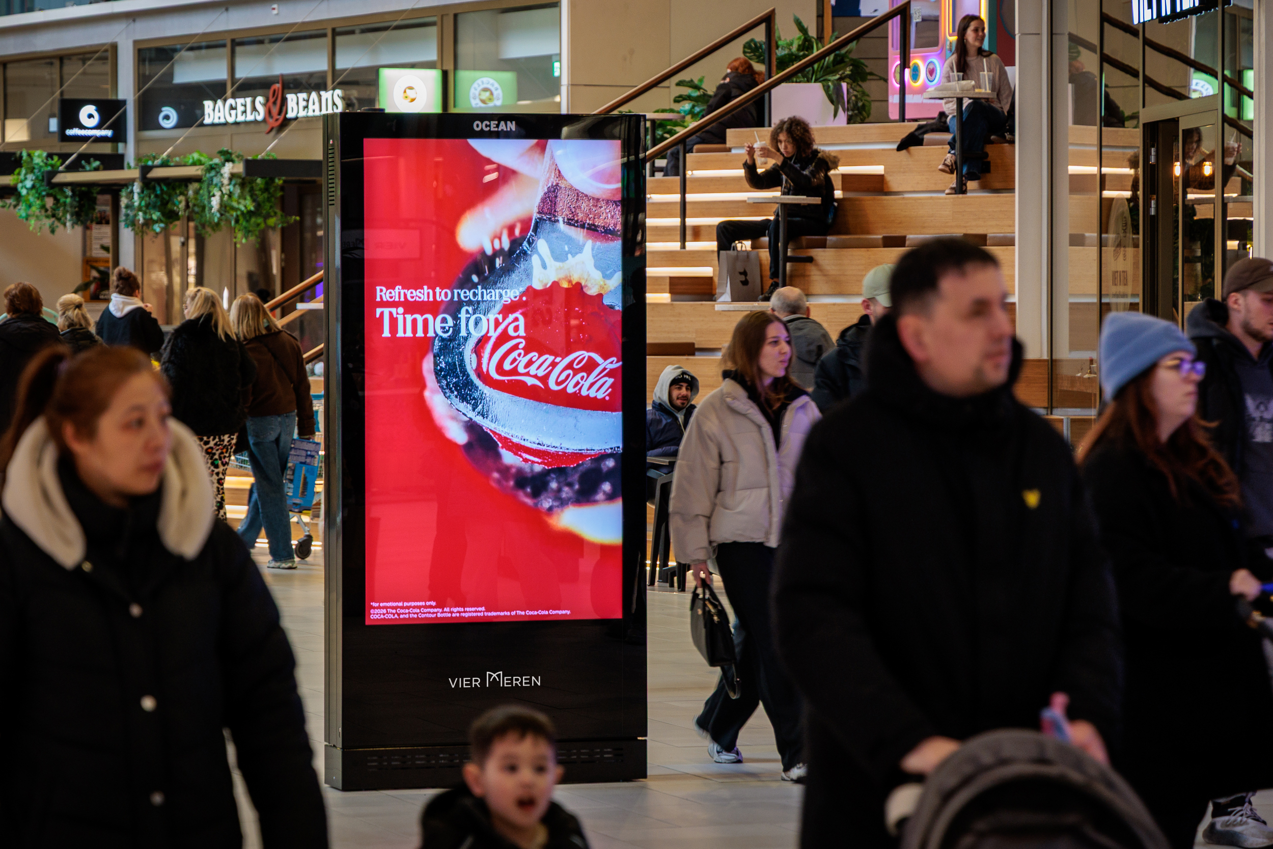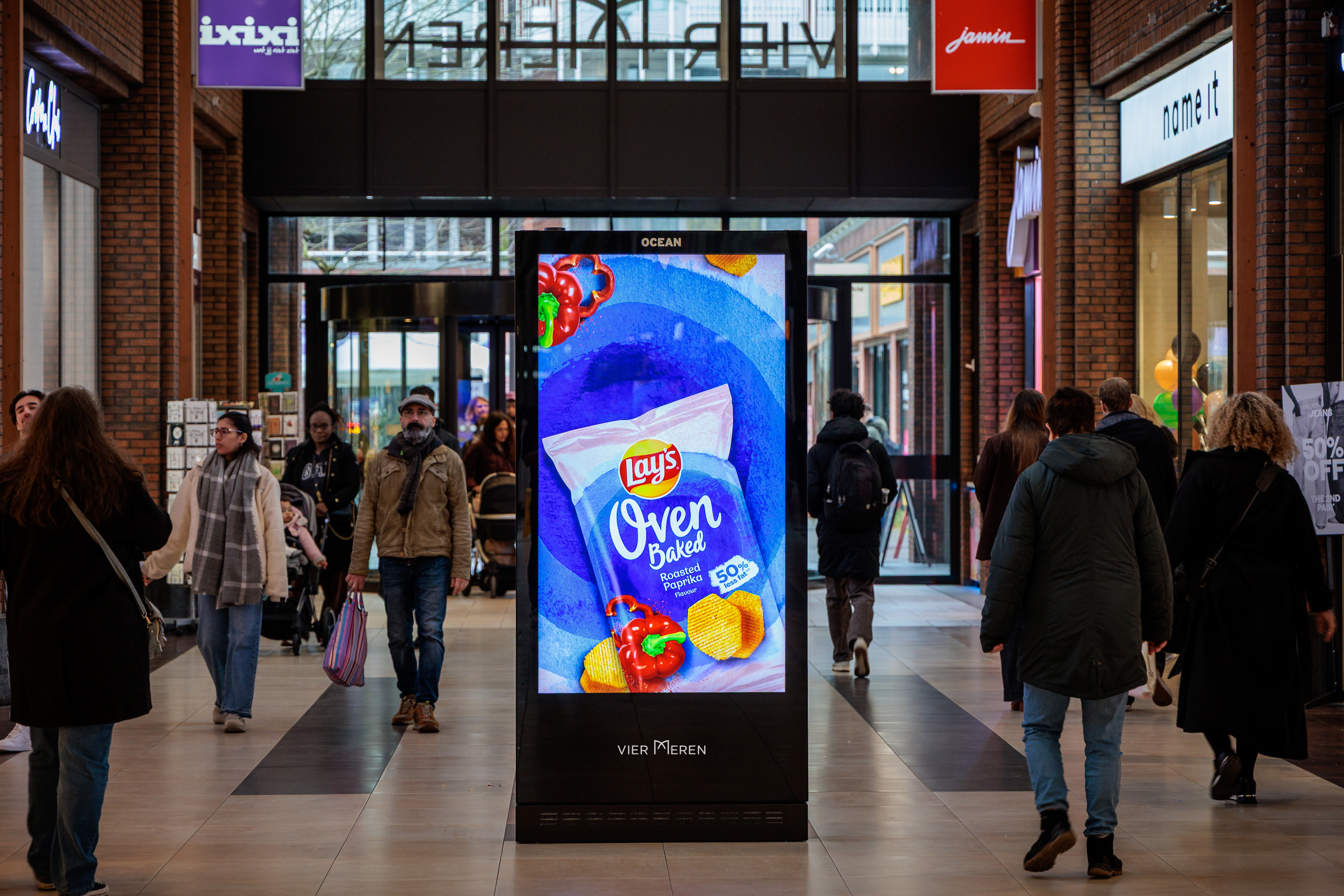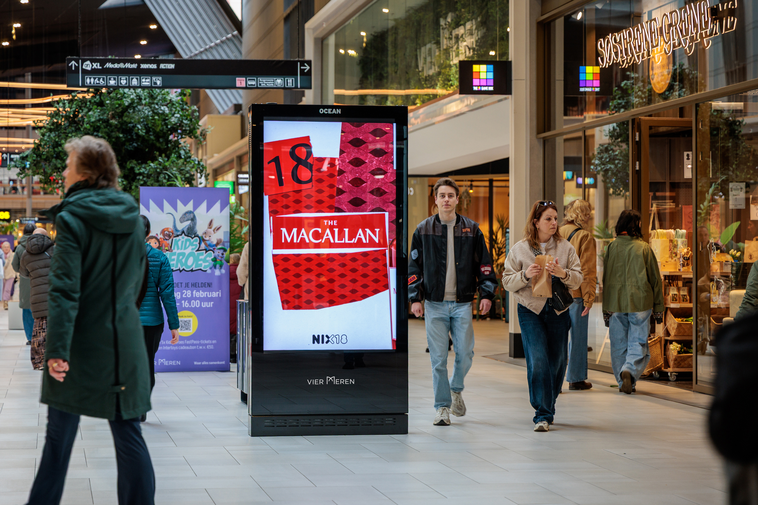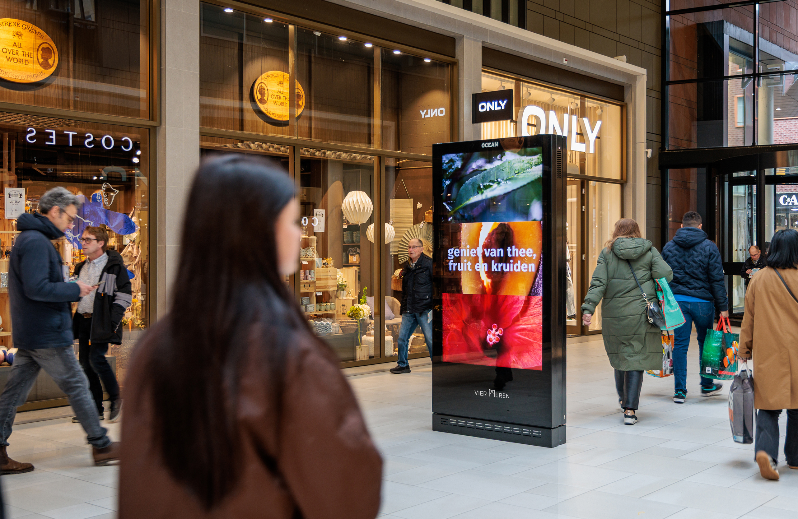 With 14 digital totems and two large screens, including an impressive 45 m² screen, campaigns are positioned right in the path of shoppers. A place where impact and reach naturally come together.