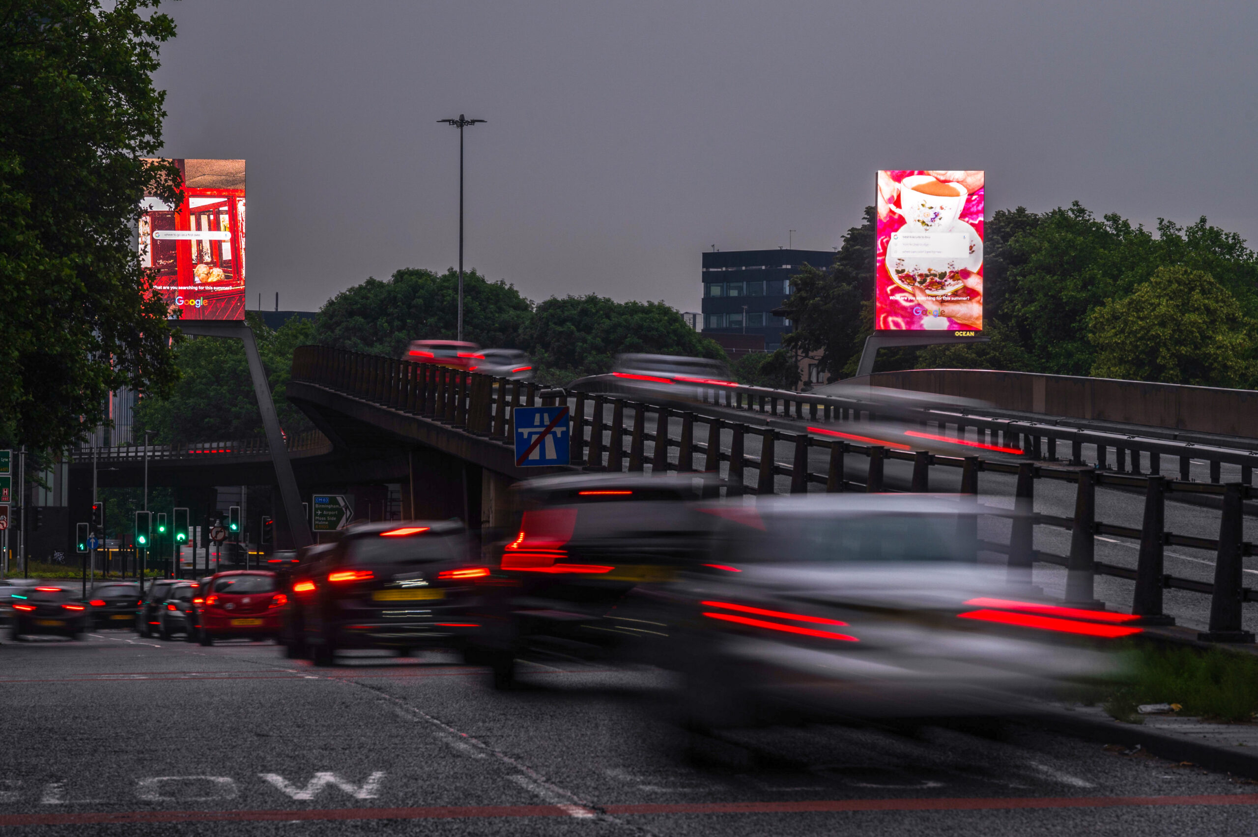 Two double-sided synchronised digital screens on Manchester’s busiest arterial route target commuters, local businesses, and residents traveling on the Mancunian Way.